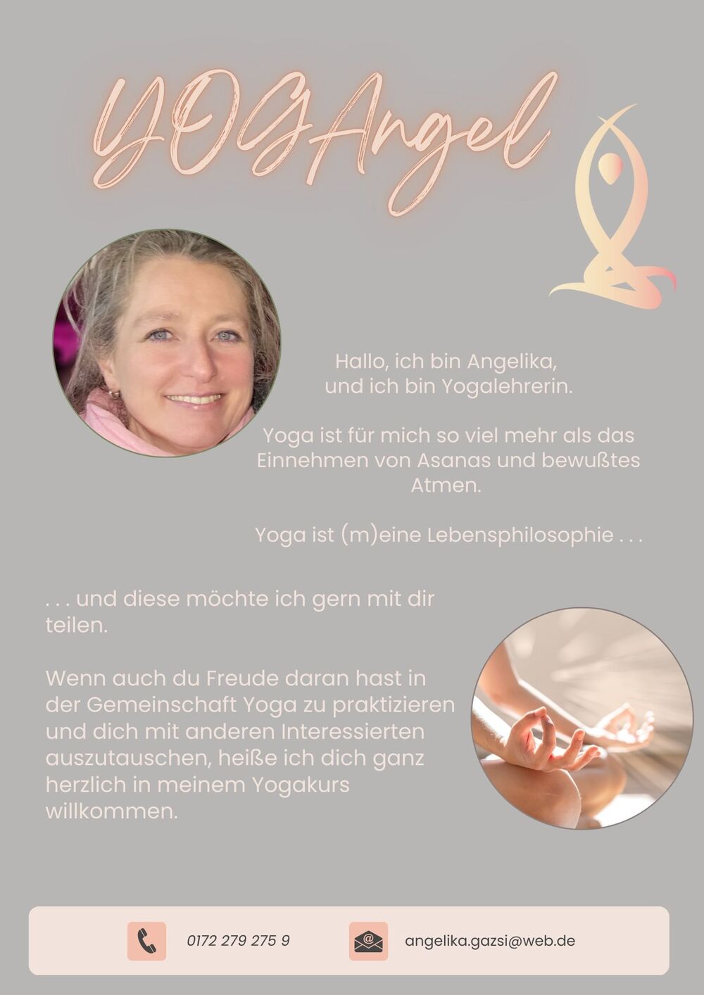 Ich freue mich sehr, dass Angelika mit YOGAngel Teil unserer Praxisgemeinschaft ist und diesen besonderen Raum für Begegnung, Bewegung und inneres Gleichgewicht mit dir teilt.